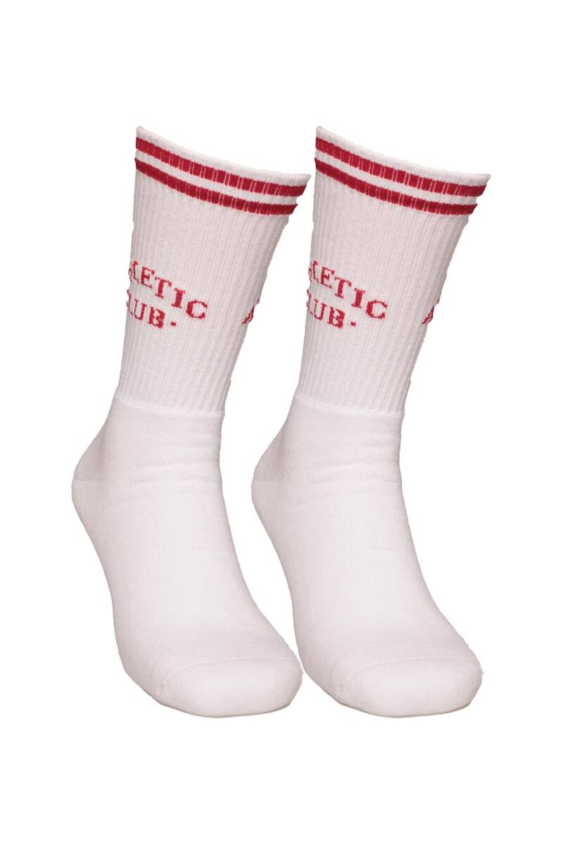 Dündar Yazı Baskılı Erkek Soket Çorap 7101 | Beyaz Kırmızı