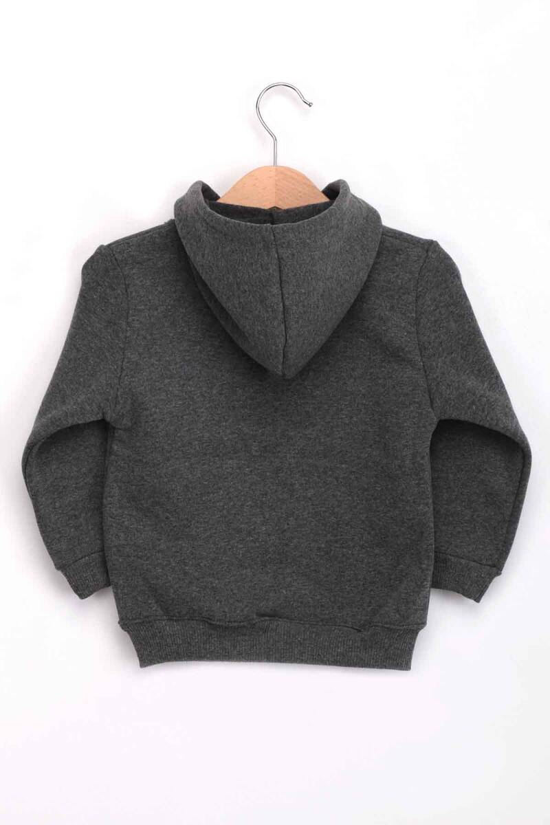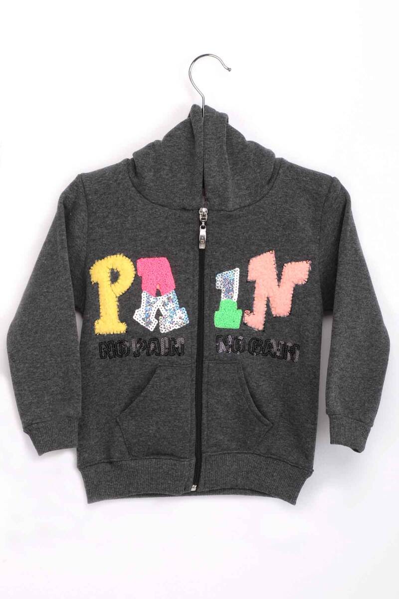 Pul İşlemeli Kapüşonlu Fermuarlı Kız Çocuk 3 İplik Hırka | Füme