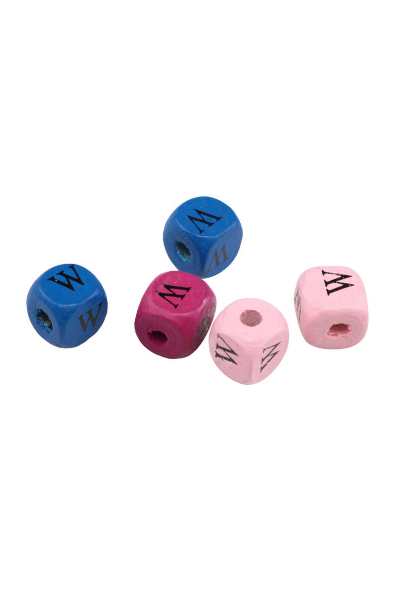 Renkli Ahşap Harf Boncuk 5'li 10 mm W