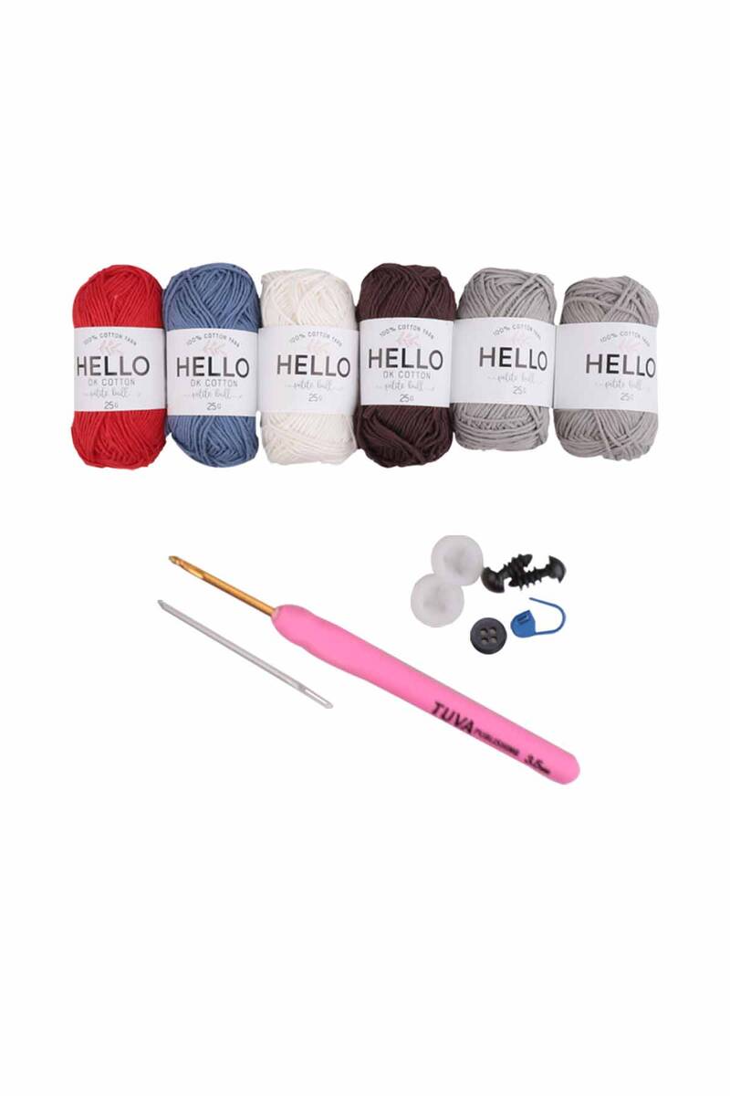 Tuva Denizci Koala Amigurumi Kiti -SCF04 Amigurumi denizci koala'yı örebilmeniz için gerekli tüm malzemeler kutunun içerisinde mevcuttur. Amigurumi kitini aldığınızda başka bir malzeme almanıza gerek yoktur. Amigurumi denizci koala'nın bitmiş hali yaklaşık 21 cm boyundadır. Amigurumi oyuncaklar çocuklar tarafından çok fazla sevilip temas halinde bulunulduğu için sağlık açısından daha fazla tercih ediliyor. Bu Kitin İçerisinde:6 adet 25 gr %100 Pamuklu İplik 1 adet tuva 3,5mm Silikon saplı tığ Dolgu için elyaf Gerekli aksesuarlar ( 1 adet şapkası için düğme, 1 adet ilmek belirleyici, 2 adet kilitli göz, dikiş iğnesi ) Yapım kitapçığı bulunmaktadır.