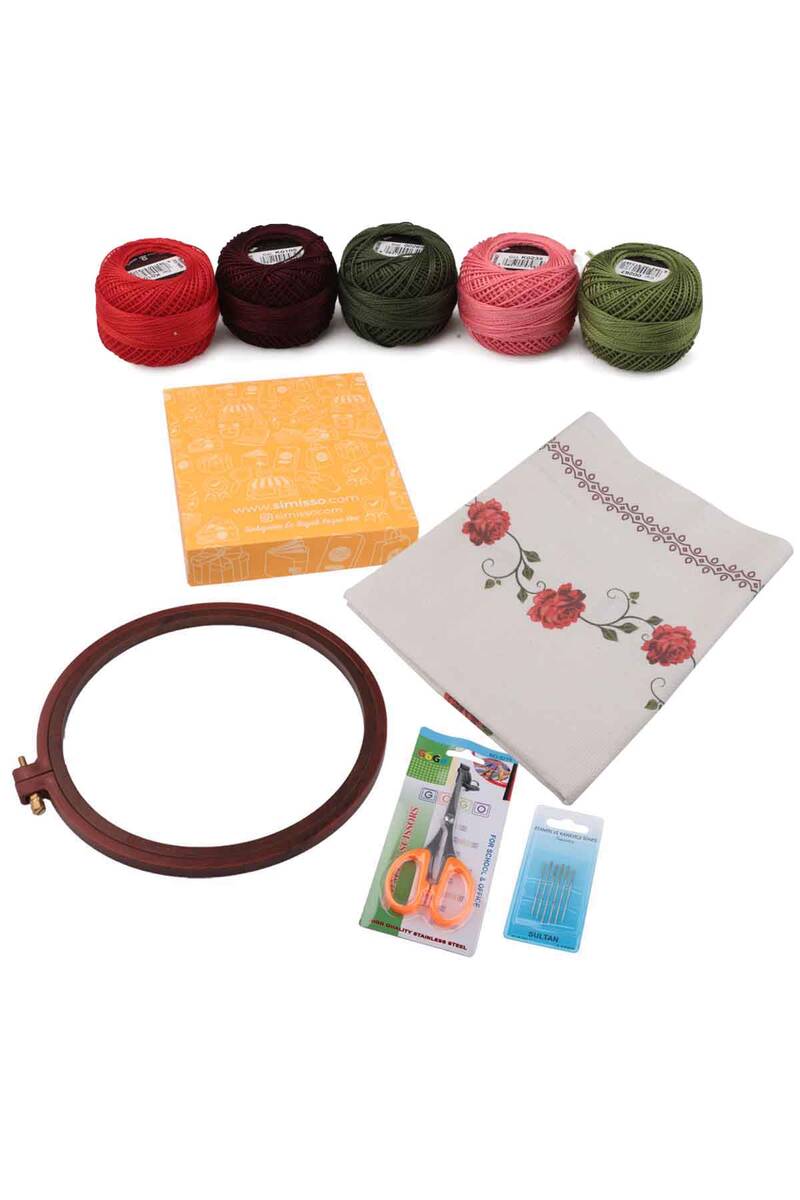 Set İçeriği : - 1 Adet Baskılı Keten Ajurlu Etamin İşlemelik Seccade, - 1 Adet plastik vidalı kasnak, - 1 Adet Makas, - 1 Paket Etamin ve Kanaviçe iğnesi ( Paket içeriği 6 adettir.) - 5 Adet modele uygun renkte Domino 8 Numara nakış ipi. Baskılı keten ajurlu işlemelik seccade 75*125 cm ebadındadır. Kenarları keten ajurludur. Plastik vidalı kasnak dış çapı 21 cm, iç çapı 18 cm ' dir. Makas, paslanmaz çelikten üretilmiştir. Boyu 10.5 cm ' dir. Vidadan uca kadar olan kısım 4 cm ' dir. Etamin ve kanaviçe iğnesi, paket içeriği 6 adettir. - Domino 8 No nakış ipi % 100 Pamuktan üretilmiştir. Renkleri solmaz. Parlaktır. İki kez merserize işlemi yapılmıştır.