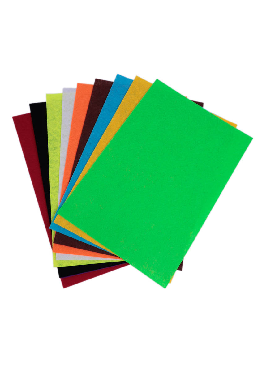 Paket içerinde 10 adet farklı renkte ince keçe mevcuttur. Paket içerisinde kırmızı, mor, siyah, neon sarı, beyaz, turuncu, kahverengi, mavi, sarı, yeşil renkleri mevcuttur. 3 mm kalınlığındadır. 20 * 30 cm ebatındadır. Çanta modelleri, kapı süsleri ve aksesuar yapımı için uygundur.Weight (Kg):0.1