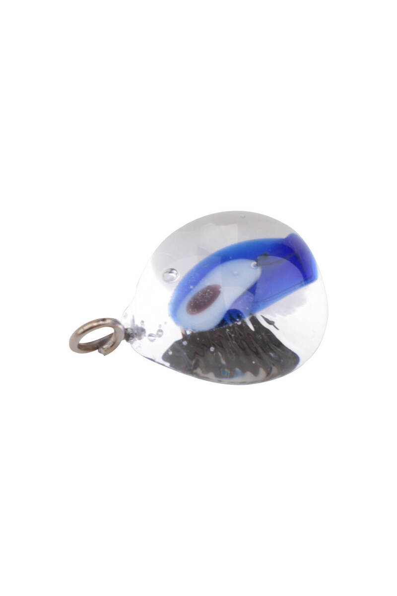 Yassı Cam Nazar Boncuklu Kolye Ucu Mavi